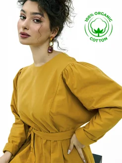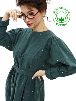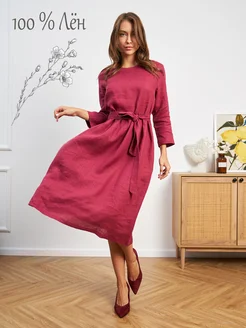 Платье из льна в стиле бохо с корсетным поясом