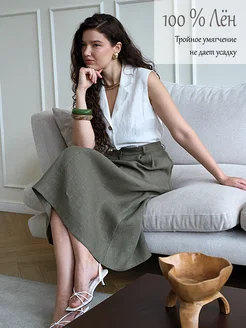 Юбка льняная миди со складками