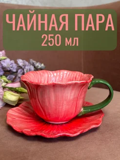 Чайная пара цветок подарочная, набор чашка и блюдце керамика