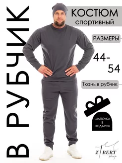 Костюм спортивный в рубчик осенний оверсайз с шапкой