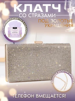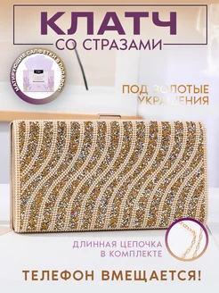 Клатч золотой со стразами