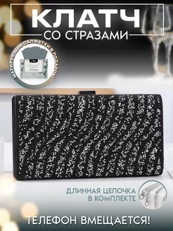 Клатч блестящий черный "Волна"