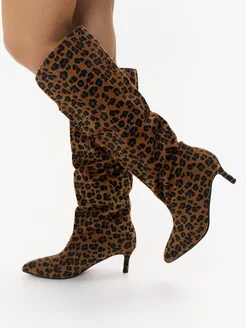 Сапоги трубы демисезонные на низком каблуке леопардовые