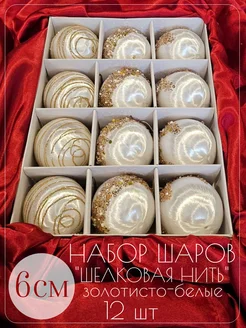 Набор шаров 12 шт, золотисто-белый