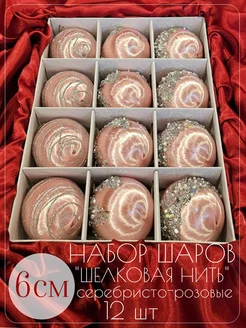 Набор шаров 12 шт, серебристо-розовый