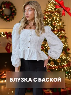 Жаккардовая блузка нарядная с баской и рукавами фонариками