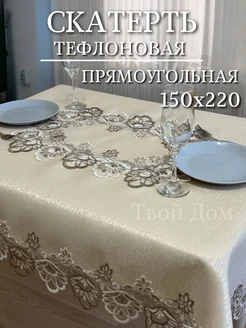 Скатерть тканевая круглая на стол кружево и лен 180 см