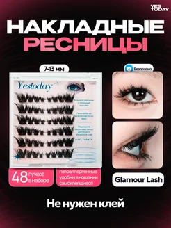 Самоклеящиеся пучковые гипоаллергенные ресницы Glamour