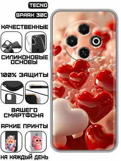 Чехол на Tecno Spark 30C с принтом Сердечки