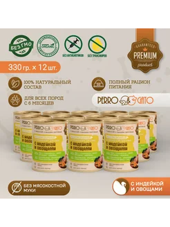 12 х 330г Влажный корм для собак с индейкой и овощами