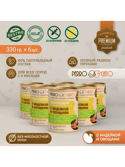 6 х 330г Влажный корм для собак с индейкой и овощами