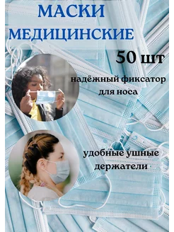 Маски медицинские взрослые защитные, 50 штук