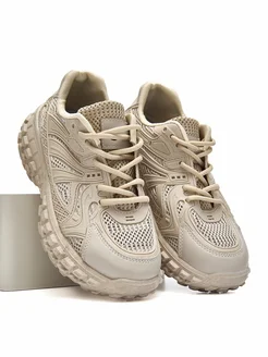 Кроссовки бежевые сетка на платформе фитнесс