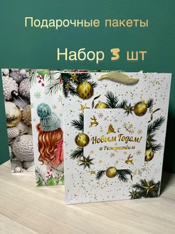 Подарочный новогодний пакет для упаковки подарка, набор