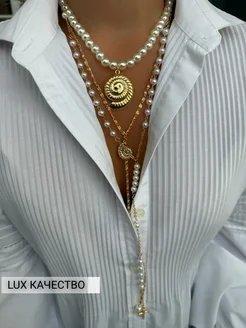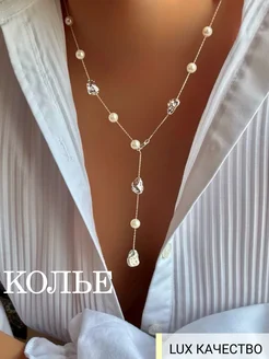 Чокер на шею бижутерия с жемчугом колье с ракушками 3 в 1