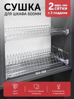 Сушилка для посуды в шкаф 60 см двухуровневая, INOX