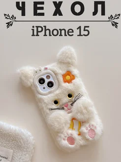 Пушистый чехол на iPhone 15.Чехол на айфон 15