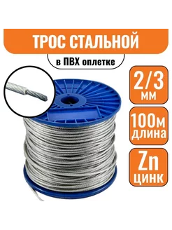 Трос стальной в ПВХ оплетке 2 3мм 100м DIN 3055