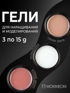 Набор гелей для наращивания и моделирования ногтей 3 шт