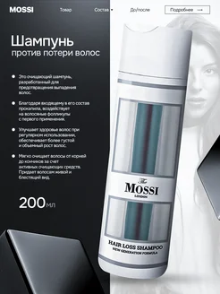 Шампунь против потери волос профессиональный Mossi 200 мл