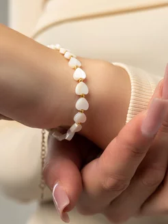 Браслет из натуральных камней с перламутровыми сердечками