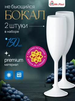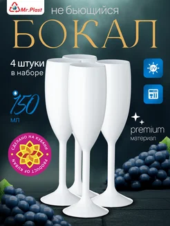 Бокалы для шампанского пластиковые супер прочные 4 шт
