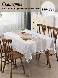 Скатерть тканевая с вышивкой и бахромой 140×220