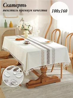 Скатерть тканевая с вышивкой и бахромой 100×160