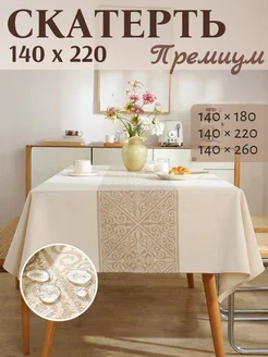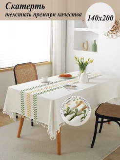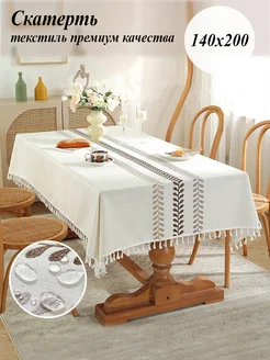 Скатерть тканевая с вышивкой и бахромой 140×200