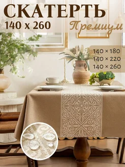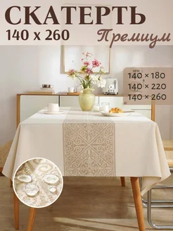 Скатерть тканевая с вышивкой и бахромой 140×260