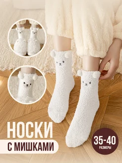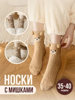 Носки махровые с мишками с принтом новогодние подарок 2026