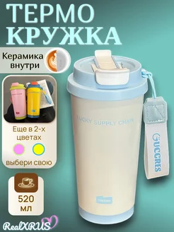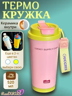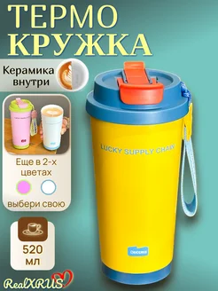 Термокружка для кофе с трубочкой с керамическим покрытием
