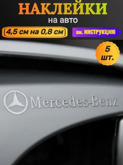 Металлические наклейки на авто Мерседес, 5 шт. серебристые