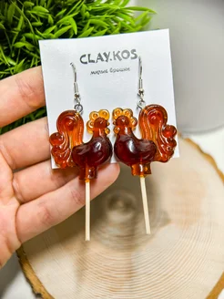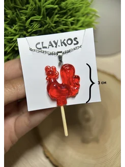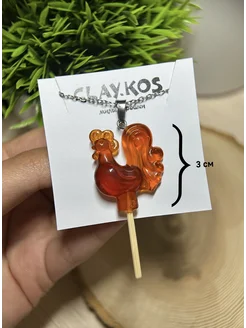 Кулон карамельный петушок на палочке, 3 см, ручная работа