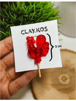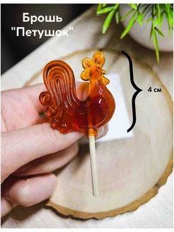 Брошь карамельный петушок на палочке, 3 см, ручная работа