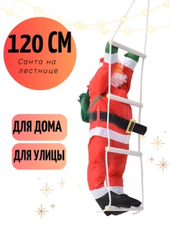 Дед мороз подвесной на лестнице уличный 120 см