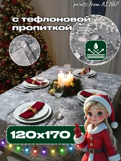 Серая Новогодняя Скатерть с тефлоновой пропиткой 120х170