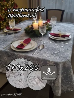 Серая Скатерть в снежинку с тефлоновой пропиткой 170х200