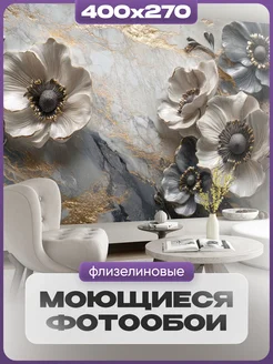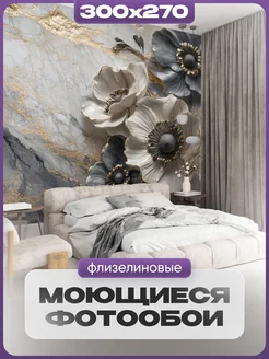 Фотообои 3d в спальню и зал флизелиновые Цветы и мрамор