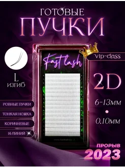 Ресницы для наращивания Готовые пучки 2D, L, микс Коричневые
