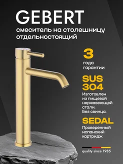 Смеситель GB11401.21 на столешницу, матовое золото