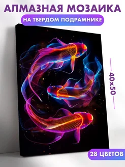 Алмазная мозаика на подрамнике 40х50 Неоновые рыбы