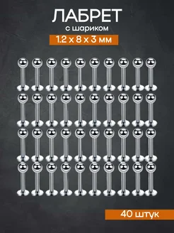 Набор лабрет 8 мм для пирсинга с шариком (40 штук)