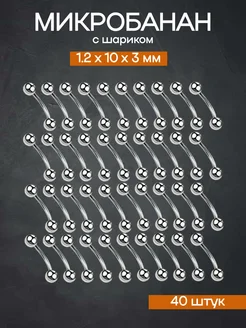 Набор микробанан 10 мм для пирсинга с шариком (40 штук)