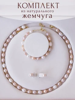 Набор бижутерии колье серьги браслет из натурального жемчуга