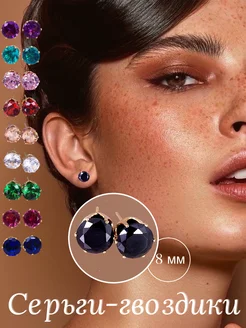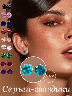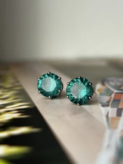 Серьги гвоздики пусеты зеленый цвет бижутерия под серебро