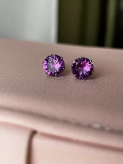 Серьги гвоздики пусеты фиолетовый цвет бижутерия под серебро