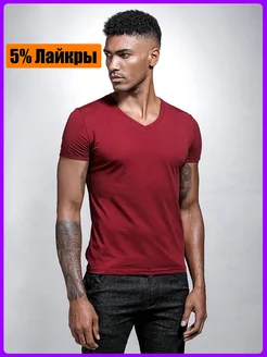 Футболка с лайкрой облегающая V-ворот Slim Fit базовая