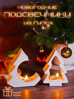 Новогодний подсвечник из гипса в виде елочки. Набор из 2 шт