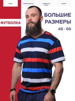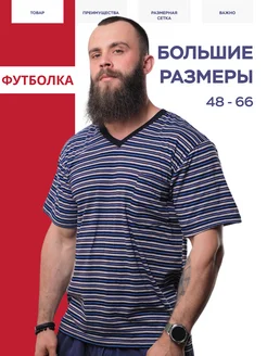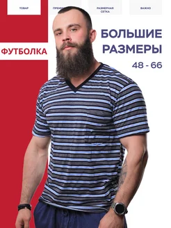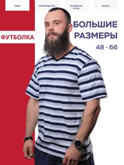 Футболка хлопок, V-образная, в полоску, большие размеры
